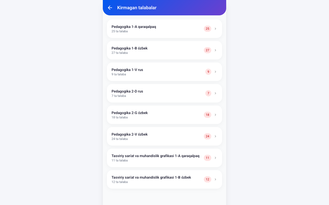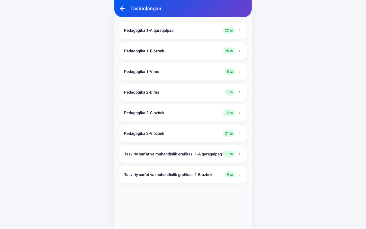 - Shu statusdagi talabalar guruhlar bo'yicha ko'rsatiladi